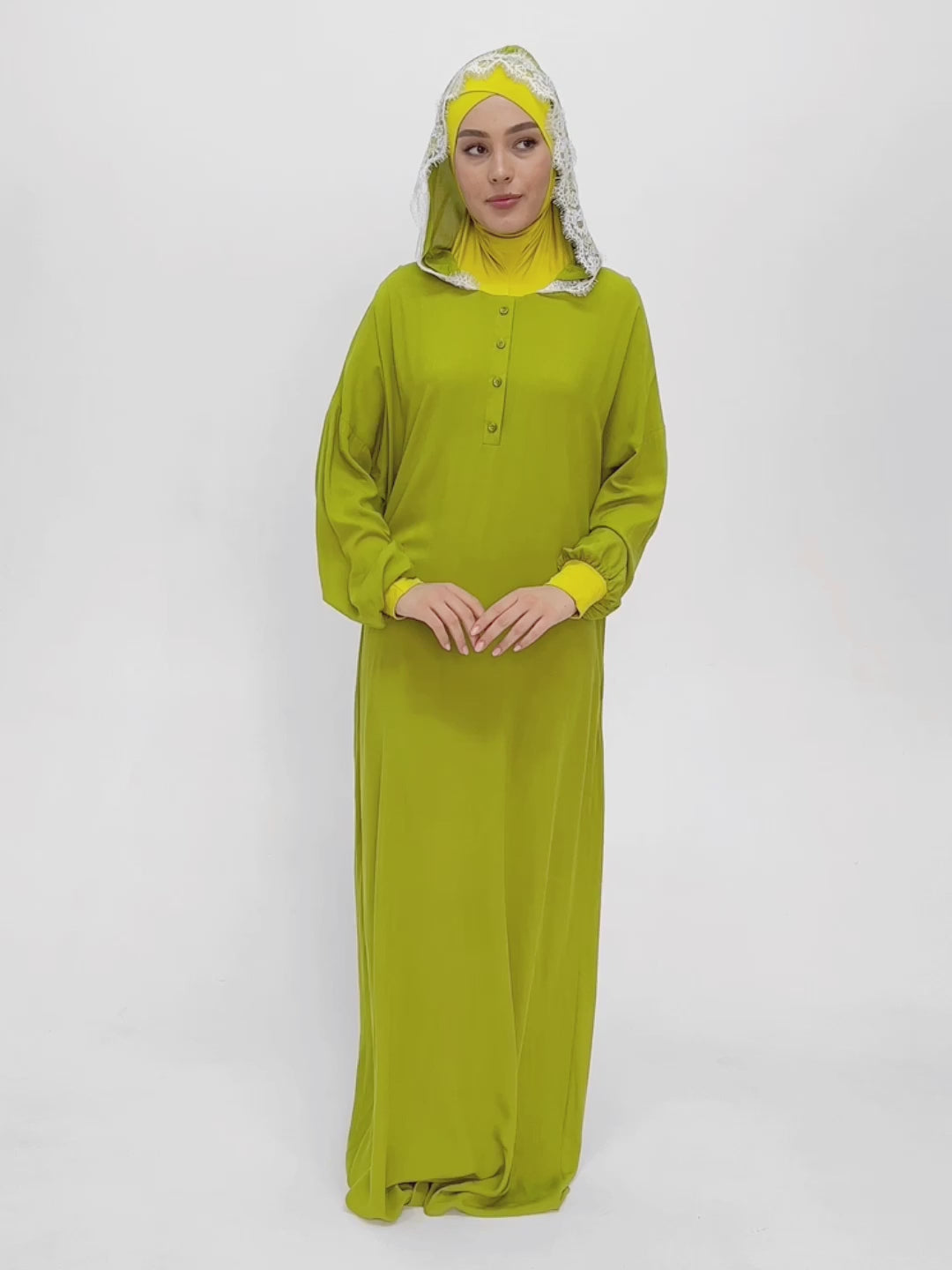 Hooded One-Piece Prayer Dress: Luminous Lime