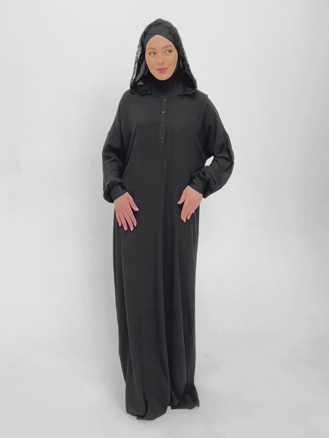 This Hooded One-Piece Prayer Dress / Jilbab is part of our signature MUMINY HOODS collection.