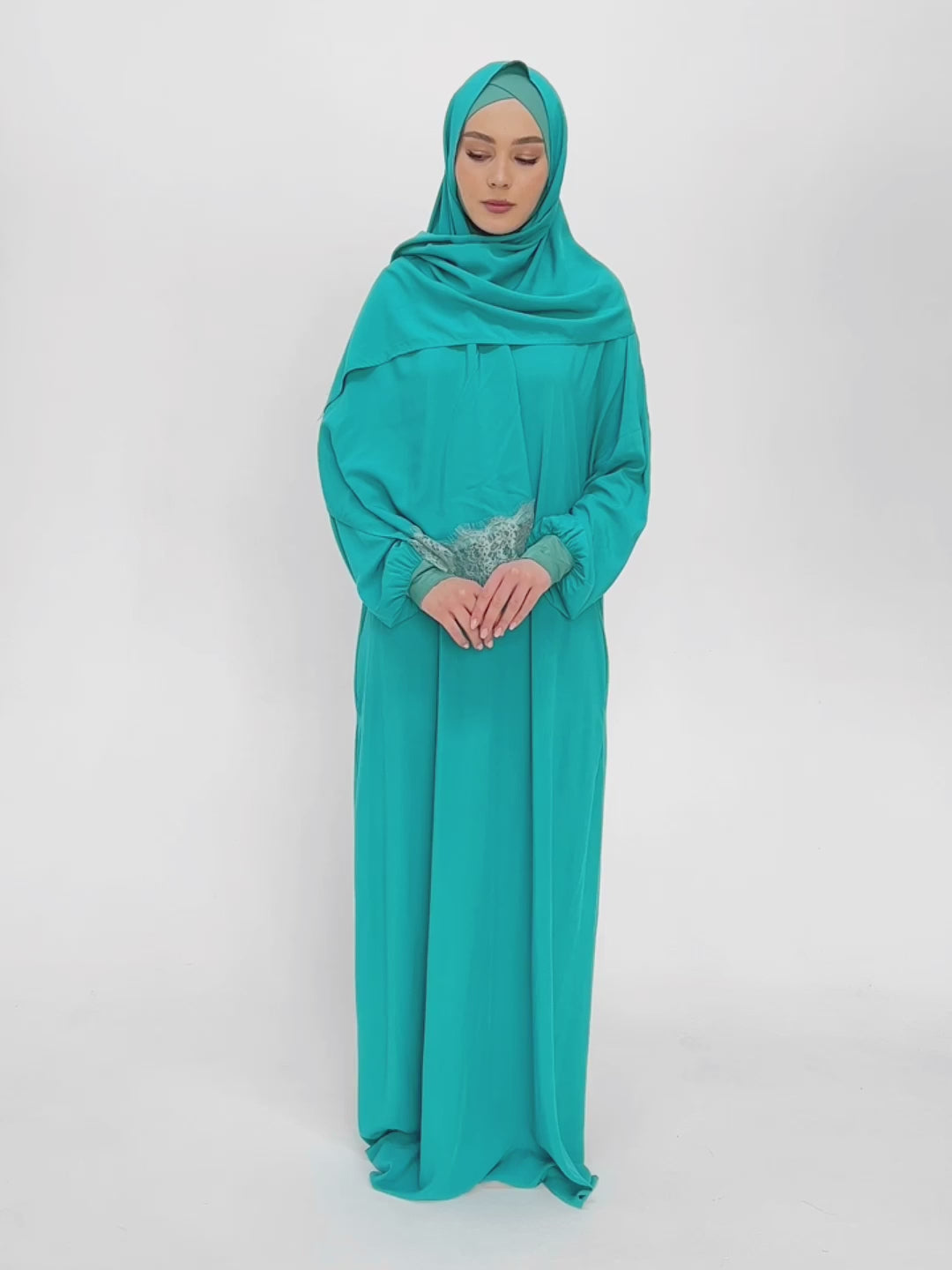 One-Piece Prayer Dress With Scarf: Teal Twilight